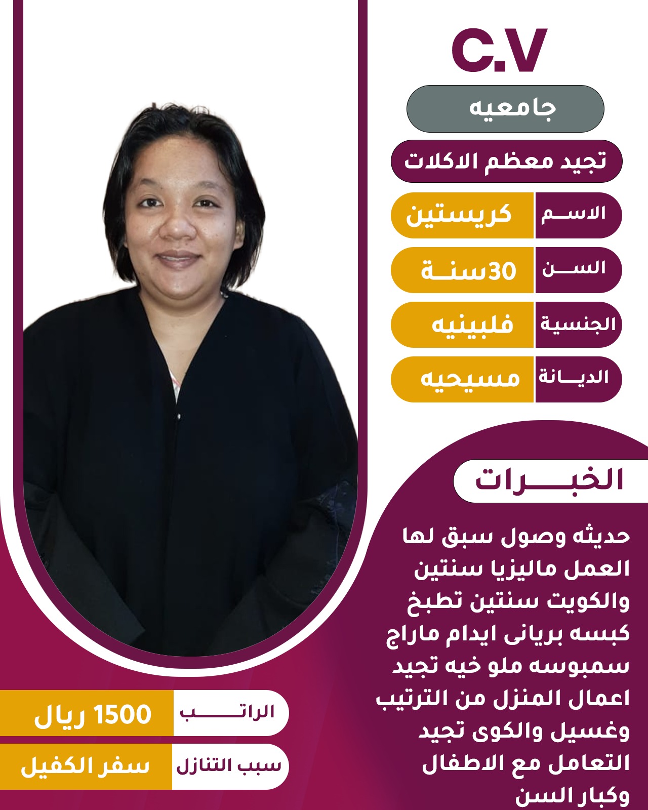 🔹 الجنسيّة: فلبينية