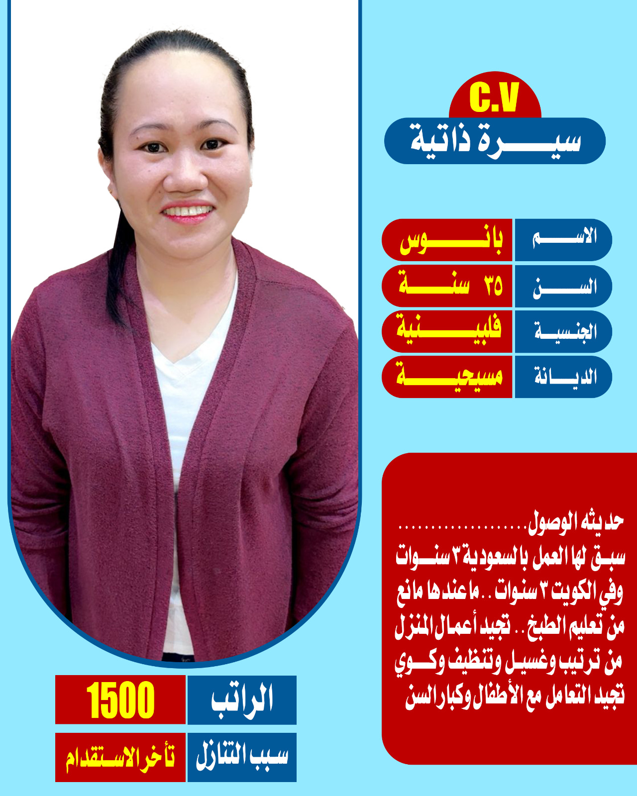 تنازل عاملات منزلية جميع الجنسيات0578052462