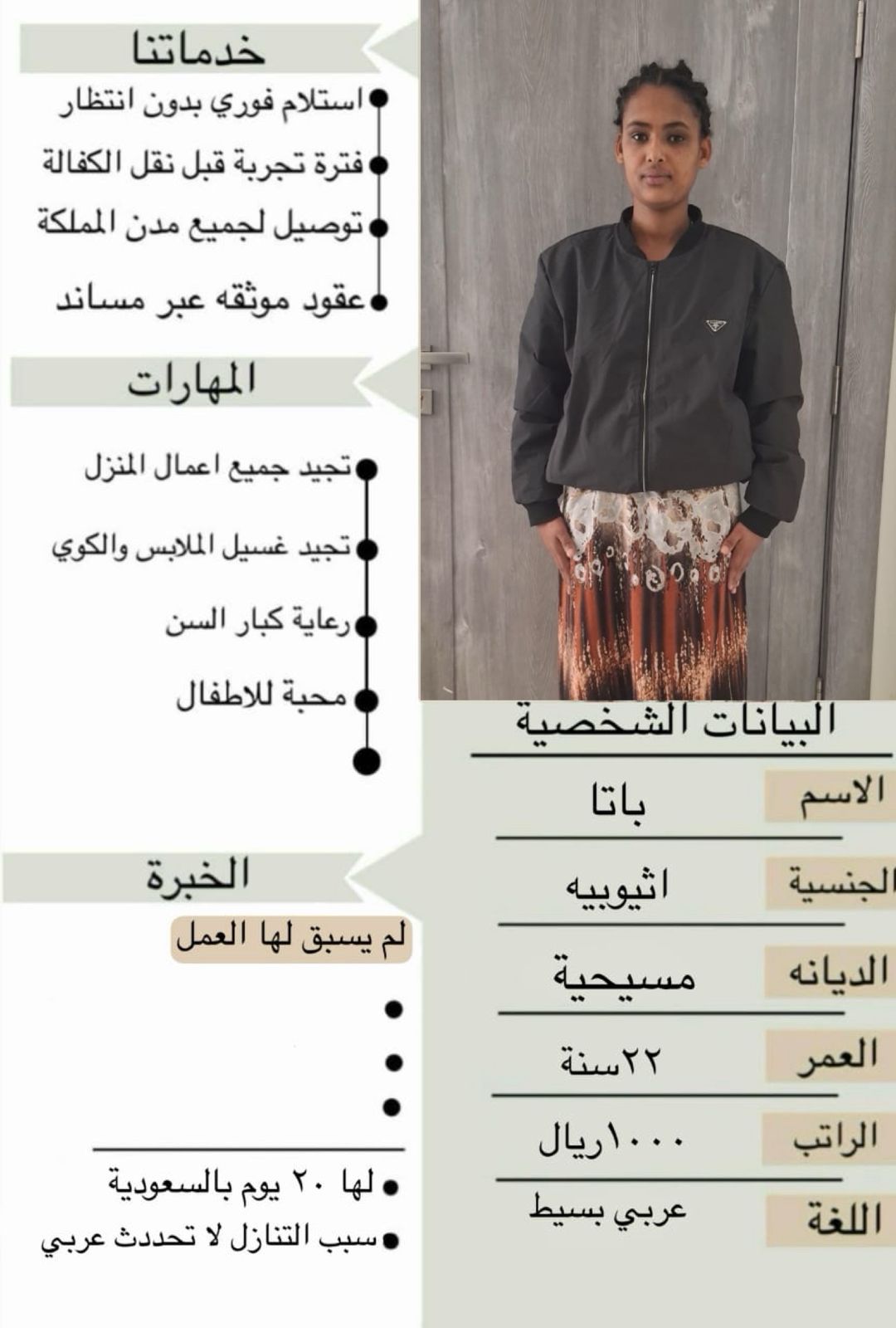نوفر خادمات للتنازل من مختلف الجنسيات، خبرة في أعمال المنزل (تنظيف – طبخ – رعاية كبار السن والأطفال)، جاهزات للعمل فورًا.