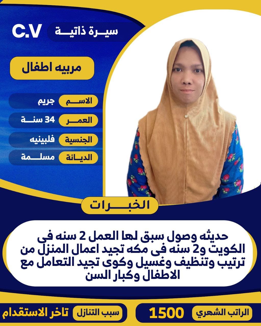 نعلن عن وجود عاملات علي اكفاء المهارات لتلبيه احتياجات البيت السعودي ممتازين بالعمل لنقل الكفال وعقد سنتين 🥇🥇