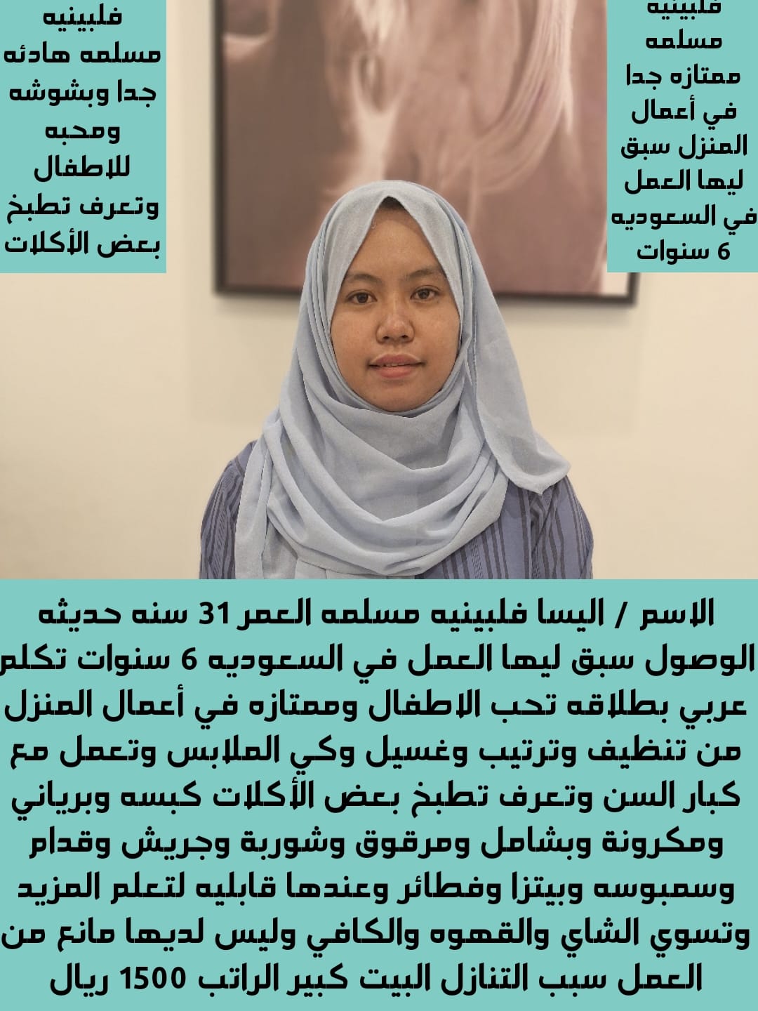 سبق لهم العمل ومدربين عل يجميع الاعمال المنزلية