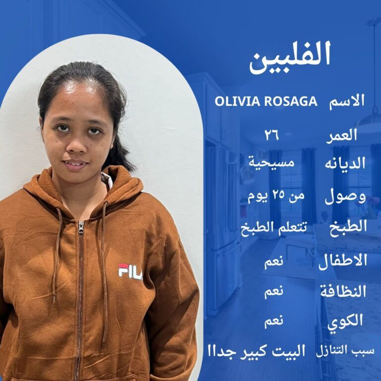 خادمات للتنازليوجد لدينا ومطلوب خادمات للتنازل عاملات للتنازل شغالات للتنازل طباخات كوافيرات مربيات أطفال من جميع الجنسيات للتواصل بنا علي مدار الساعه 0538095298Sama Office for the Transfer of Maidsديسمبر 20, 2025عرض الإعلانيوجد لدينا ومطلوب خادمات للتنازل عاملات للتنازل شغالات للتنازل طباخات كوافيرات مربيات أطفال من جميع الجنسيات للتواصل بنا علي مدار الساعه 0538095298