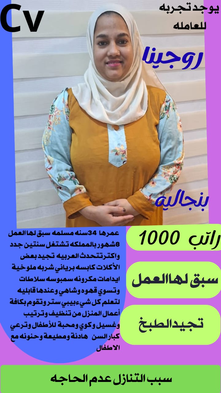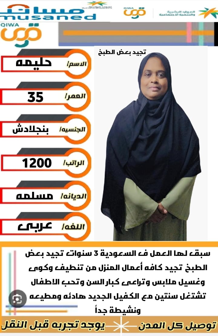 يا هلا ومرحبا بكم جميعا 🌸 للتنازل عاملة نظافة منزلية مدربة وذات خبرة.🧕🏻🏡 تتقن جميع أعمال التنظيف🧽🫧 والترتيب، بالإضافة إلى المساعدة في المطبخ🍽 ورعاية الأطفال.👩👦 أوراقها نظامية وجاهزة لنقل الكفالة✔️ للتواصل والاستفسار 🙂 يرجى التواصل واساب علي الرقم [ 0576698723…