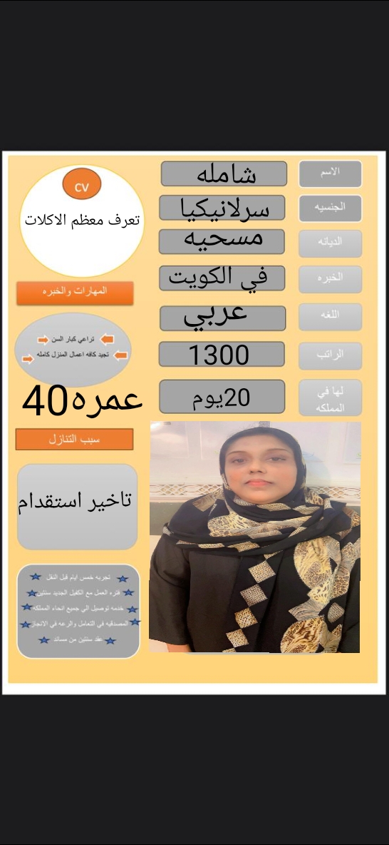 عملاء الكرام حياكم الله يوجد عاملات سرلانيكيات للتنازل حديثه وصول عامله سرلانيكي سبق لها العمل في الكويت عامله سرلانيكي حديثه وصول عامله تعرف معظم الاكلات للتواصل واتساب 0542180143